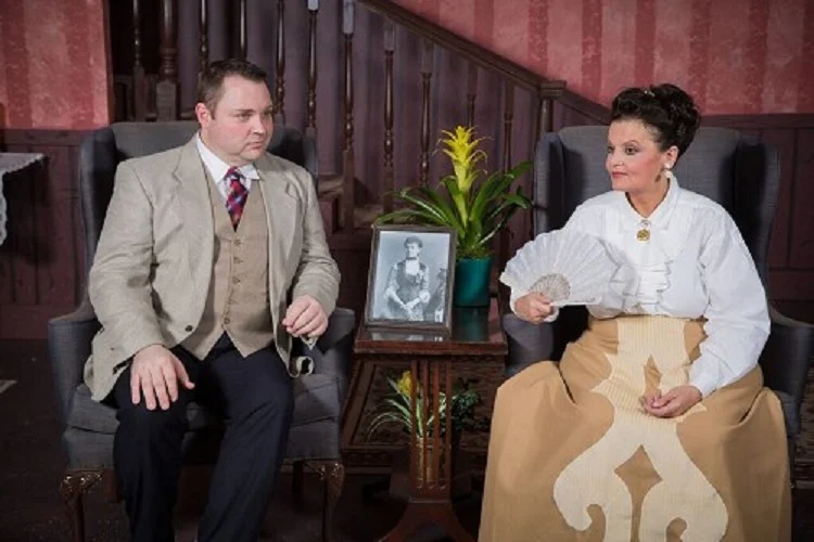 Laura Warner is Addie, the wise, compassionate maid who delivers the author’s take on the Biblical quote at the top of this review: “Well, there are people who eat the earth and eat all the people on it …. Then there are people who stand around and watch them eat it. Sometimes I think it ain’t right to stand and watch them do it.” Ms. Warner understands the subtext of her speech and creates a strong and ethical character by her stance and reactions. Cal, another servant, is played by Fred T. His is a smaller but vital role made believable by his delivery and actions. The character of Mr. William Marshall appears briefly in the first act and is played by Ben Richardson. Mr. Richardson looks the part but was also having difficulty remembering his lines which got the play off to an awkward start. Lighting by Richard Stephens, Jr., Ben Richardson, and Charlie Smith adequately illuminates the stage with the exception of the downstage areas which have bothersome dark spots so that the actors are lost in the shadows. Sound by Richard Stephens, Jr. consists mainly of piano music when Alexandria and Birdie are supposed to be playing. It is a little soft at the top of Act Three, and therefore not believable as being live.