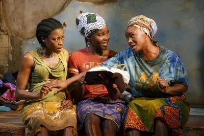 (L-R). Pascale Armand, Lupita Nyong'o, and Saycon Sengbloh in a scene from Danai Gurira's "Eclipsed", directed by Liesl Tommy. (Photo by Joan Marcus)